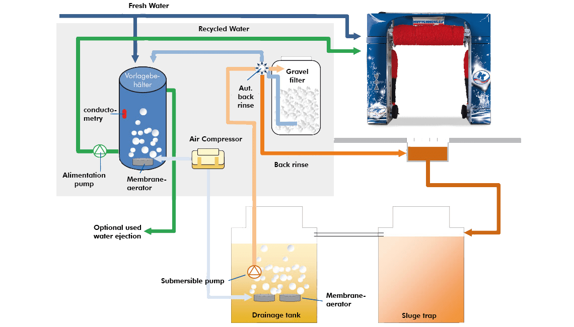 The more important thing is to use it carefully. Pure drinking water usually is too valuable to use for just the washing of vehicles. Therefore it is reasonable to recycle the required washing water in a circulation system. In addition to environmental aspects, legal rules and economic factors, such as the cost of drinking and waste water, also play a role in this decision.