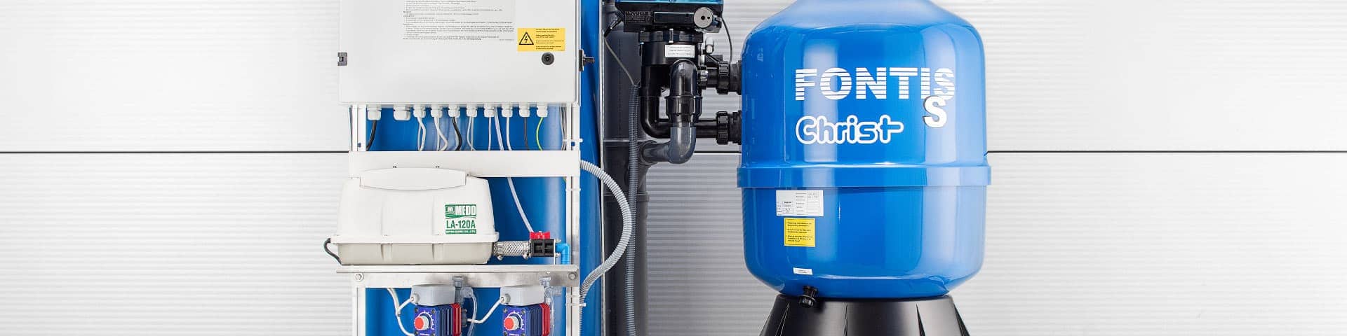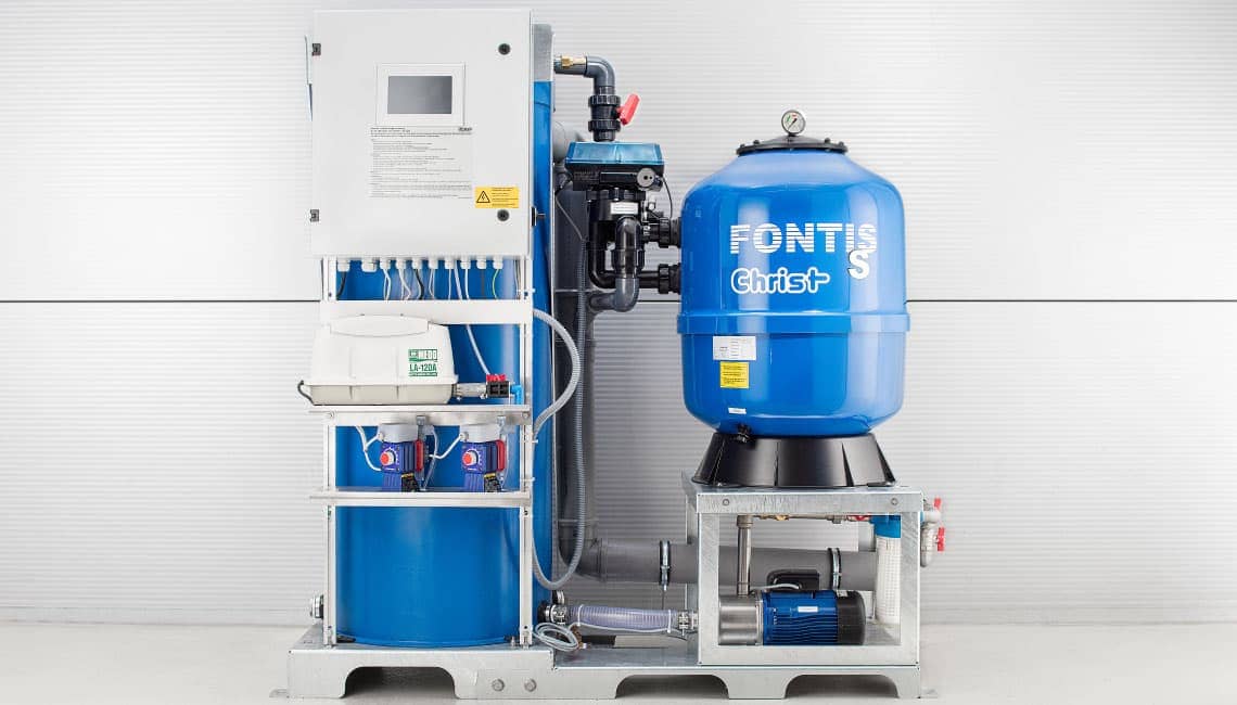 FONTIS water recycling systems are specially developed for the use with washing bays. In a compact form they combine the complete technique including washing water storage tank, quartz gravel filter and booster pump. Optional feature: chemical pre-treatment process (Flocculation). FONTIS-S is specially designed for roll-over wash units and is in accordance with the general building inspection approval from Deutsches Instituts für Bautechnik (DIBt Berlin) (German Institute of Building Techniques).