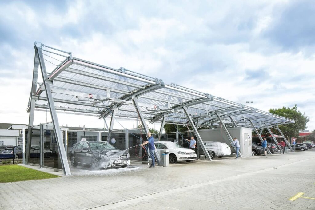- Additional turnover of up to 30 % thanks to wash bay innovations such as the BUBBLEGUN programmes, underbody wash lance in the open sky wash bay, compressed air guns and mat cleaners.
